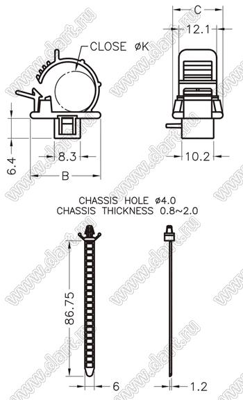 Каталог > Фурнитура для электронных устройств > Крепеж проводов и кабелей > Зажимы проводов с фиксацией в панель на защелках > SWPL серия, тип 1 > SWPL-48
