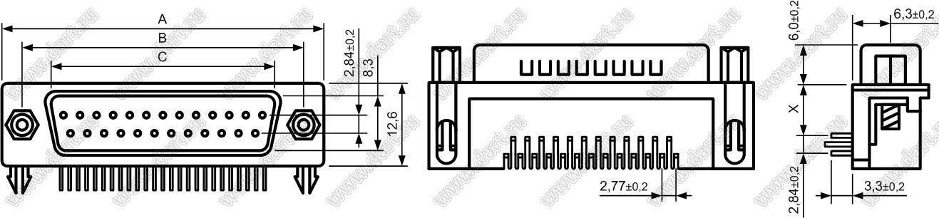 Каталог > Электронные компоненты, радиодетали > Разъёмы (соединители, переходники) > Разъемы D-SUB > DS1037-xxX (5504-xxX, DRB-xxX) серия: вилки и розетки D-SUB угловые для пайки в плату > DS1037-09M-A (5504-09P-A, DRB-09MA)