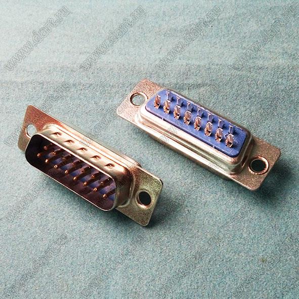 Каталог > Электронные компоненты, радиодетали > Разъёмы (соединители, переходники) > Разъемы D-SUB > DS1033-xxX (5501-xxX, DB-xxX) серия: вилки и розетки D-SUB для пайки на кабель > DS1033-15M (5501-15PA, DB-15M)