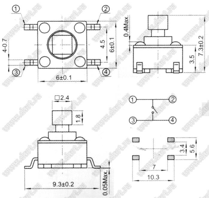 Каталог > Электронные компоненты, радиодетали > Переключатели, кнопки > Переключатели тактовые (TACT, тактовые кнопки) > Тактовые кнопки прямые для монтажа в отверстия платы > 6,0x6,0 мм > TSTPF6673 (TVDP03)