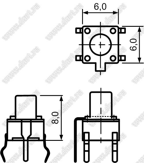 Каталог > Электронные компоненты, радиодетали > Переключатели, кнопки > Переключатели тактовые (TACT, тактовые кнопки) > Тактовые кнопки прямые для монтажа в отверстия платы > 6,0x6,0 мм > TC-0116-X (TVDP02-8.0, TS6680-250AHO)