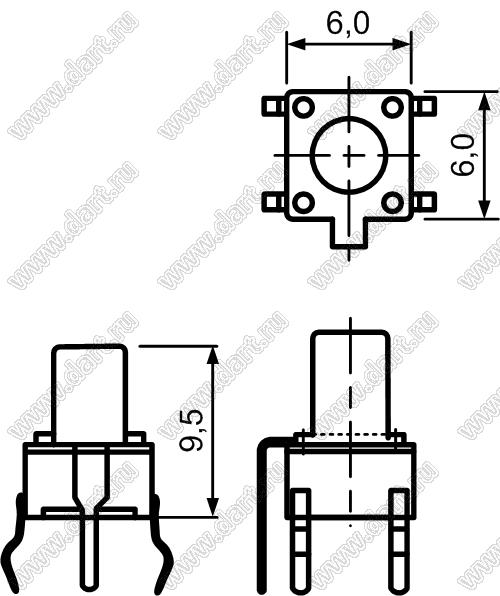 Каталог > Электронные компоненты, радиодетали > Переключатели, кнопки > Переключатели тактовые (TACT, тактовые кнопки) > Тактовые кнопки прямые для монтажа в отверстия платы > 6,0x6,0 мм > TC-0118-X (TVDP02-9.5, TS-A4PG-130)
