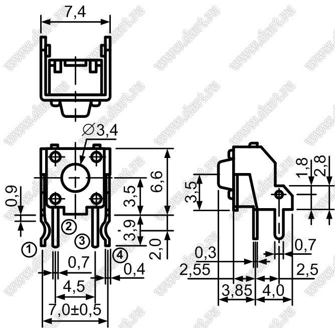 Каталог > Электронные компоненты, радиодетали > Переключатели, кнопки > Переключатели тактовые (TACT, тактовые кнопки) > Тактовые кнопки угловые для монтажа в отверстия платы > TC-0241-X