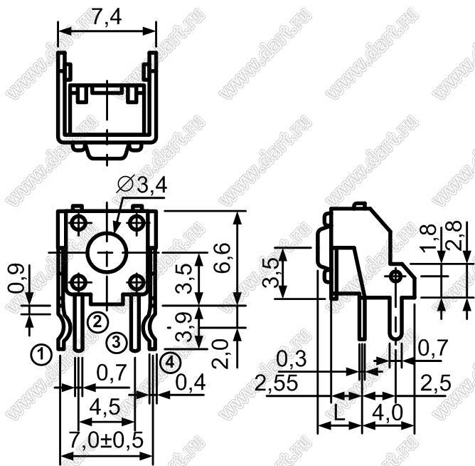 Каталог > Электронные компоненты, радиодетали > Переключатели, кнопки > Переключатели тактовые (TACT, тактовые кнопки) > Тактовые кнопки угловые для монтажа в отверстия платы > TC-0243-X (TSZJ6685-250AH)