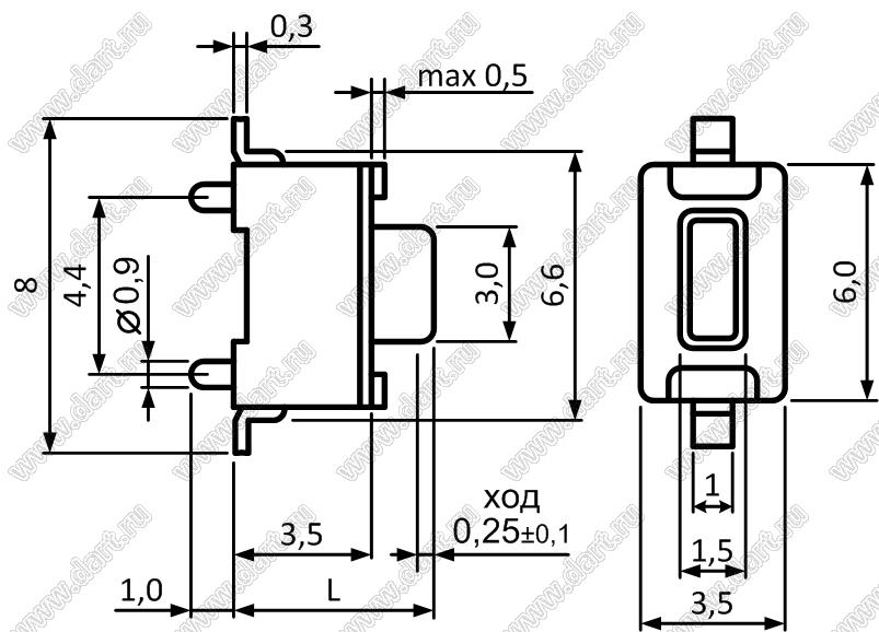 Каталог > Электронные компоненты, радиодетали > Переключатели, кнопки > Переключатели тактовые (TACT, тактовые кнопки) > Тактовые кнопки SMD (для поверхностного монтажа) > 3,5x6,0 мм > TD-02 серия > TD-02EA-Y