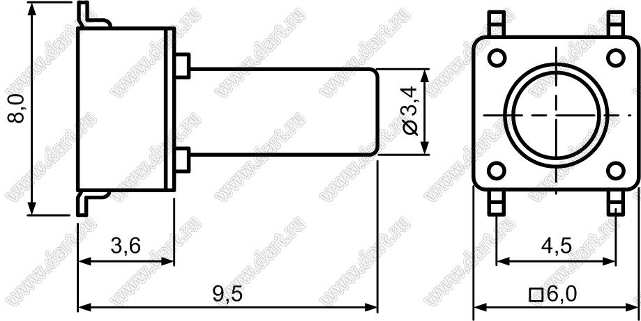 Каталог > Электронные компоненты, радиодетали > Переключатели, кнопки > Переключатели тактовые (TACT, тактовые кнопки) > Тактовые кнопки SMD (для поверхностного монтажа) > 6,0x6,0 мм > TD-06 серия > TD-06XE-X (IT-1102WD)