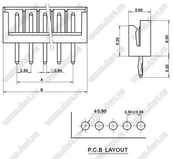 Каталог > Электронные компоненты, радиодетали > Разъёмы (соединители, переходники) > Разъемы кабель-плата > Шаг 2,50мм > A2503 (EH) серия > A2503-06A (B6B-EH-A)