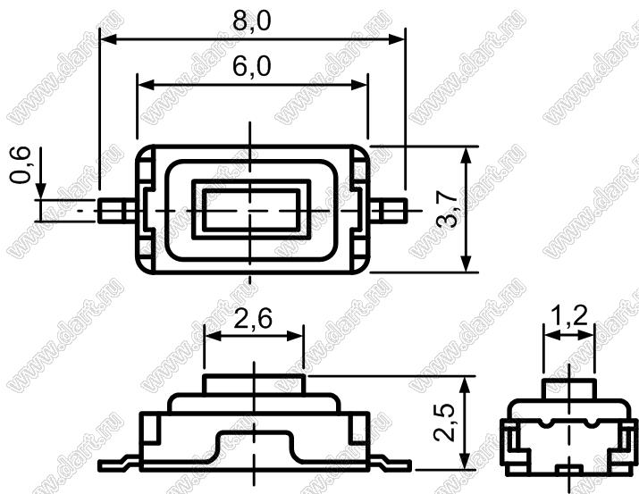 Каталог > Электронные компоненты, радиодетали > Переключатели, кнопки > Переключатели тактовые (TACT, тактовые кнопки) > Тактовые кнопки SMD (для поверхностного монтажа) > 3,7x6,1 мм > TVBM17 серия > TVBM17-2.7