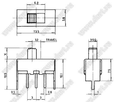 Каталог > Электронные компоненты, радиодетали > Переключатели, кнопки > Переключатели движковые (SLIDE) > Переключатели движковые (SLIDE) прямые > SS-12F58-G7