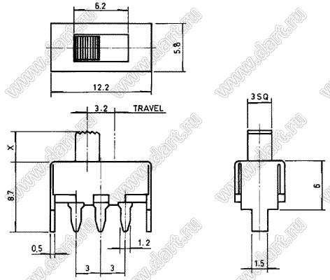 Каталог > Электронные компоненты, радиодетали > Переключатели, кнопки > Переключатели движковые (SLIDE) > Переключатели движковые (SLIDE) прямые > SS-12F44-G11
