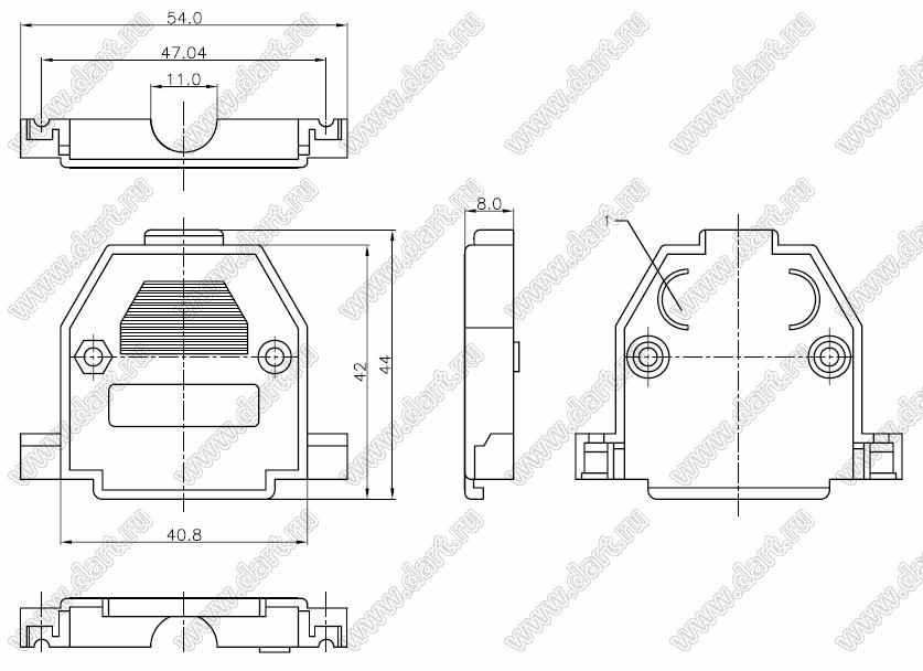 Каталог > Электронные компоненты, радиодетали > Разъёмы (соединители, переходники) > Разъемы D-SUB > Корпуса (кожухи) для разъемов D-SUB > DS1046-25C1S