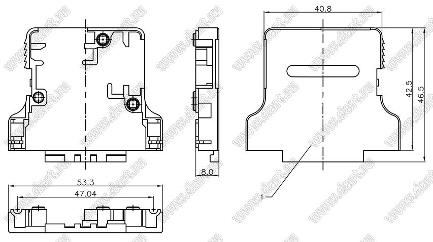 Каталог > Электронные компоненты, радиодетали > Разъёмы (соединители, переходники) > Разъемы D-SUB > Корпуса (кожухи) для разъемов D-SUB > DS1050-25N1