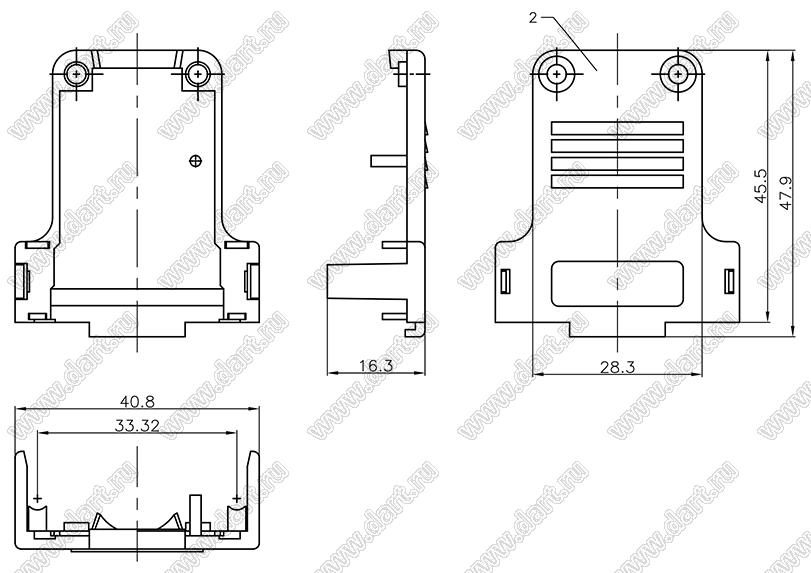 Каталог > Электронные компоненты, радиодетали > Разъёмы (соединители, переходники) > Разъемы D-SUB > Корпуса (кожухи) для разъемов D-SUB > DS1056-15N1