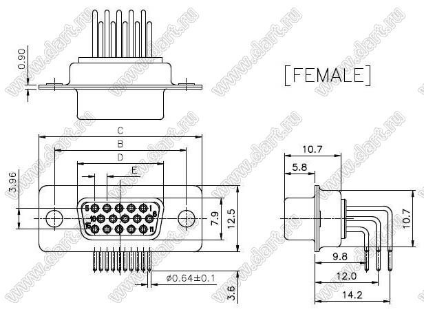 Каталог > Электронные компоненты, радиодетали > Разъёмы (соединители, переходники) > Разъемы D-SUB > DS1038-02-xxX (5510-xxX, DHR-xxX) серия: вилки и розетки D-SUB угловые «высокой плотности» для пайки в плату > DS1038-02-44FWN8SS (5505F1-44P)