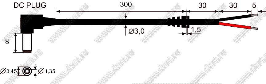 Каталог > Провода, шнуры, кабели > Кабели, жгуты, провода > Кабели питания > Кабели вторичного питания > DC CABLE L=300mm with plug 3,45x1,35mm