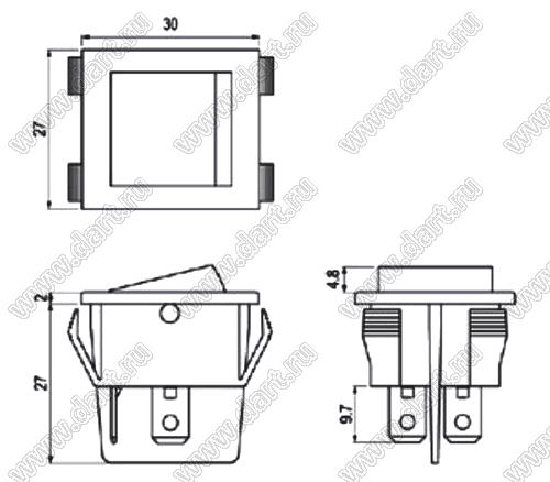 Переключатель клавишный; 4P DPDT on-on
