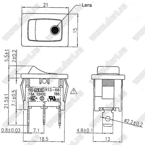 Каталог > Электронные компоненты, радиодетали > Переключатели, кнопки > Переключатели клавишные (ROCKER) > R13 серия > R13-66 серия > R13-66B2-02