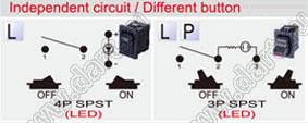 Функция: 3P SPST (светодиод) off-on (независимый контур)