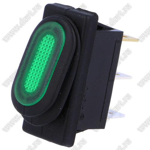 Переключатель клавишный; 2P SPST off-on (водонепроницаемый); зеленый