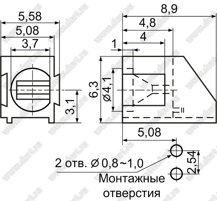 Каталог > Фурнитура для электронных устройств > Держатели и изоляторы компонентов > Держатели светодиодов > Держатели светодиодов угловые на плату > 1 x d=3,0мм > LED-6301