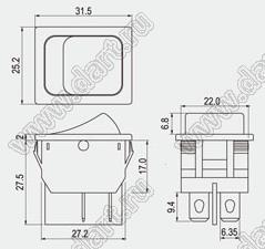 Каталог > Электронные компоненты, радиодетали > Переключатели, кнопки > Переключатели клавишные (ROCKER) > R13 серия > R13-117 серия > R13-117A-01