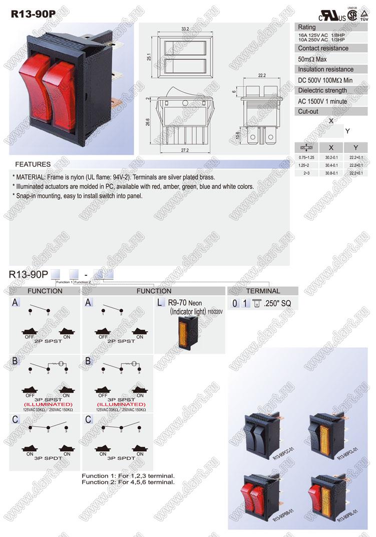 Каталог > Электронные компоненты, радиодетали > Переключатели, кнопки > Переключатели клавишные (ROCKER) > R13 серия > R13-90P серия > R13-90PCL-01