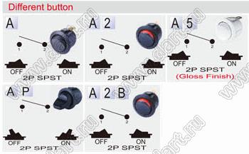 R13-112A5-02-W переключатель клавишный; 2P SPST off-on (глянцевое покрытие)