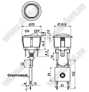 R13-112xH-02-W4-U переключатель клавишный; 2P SPST off-on