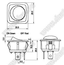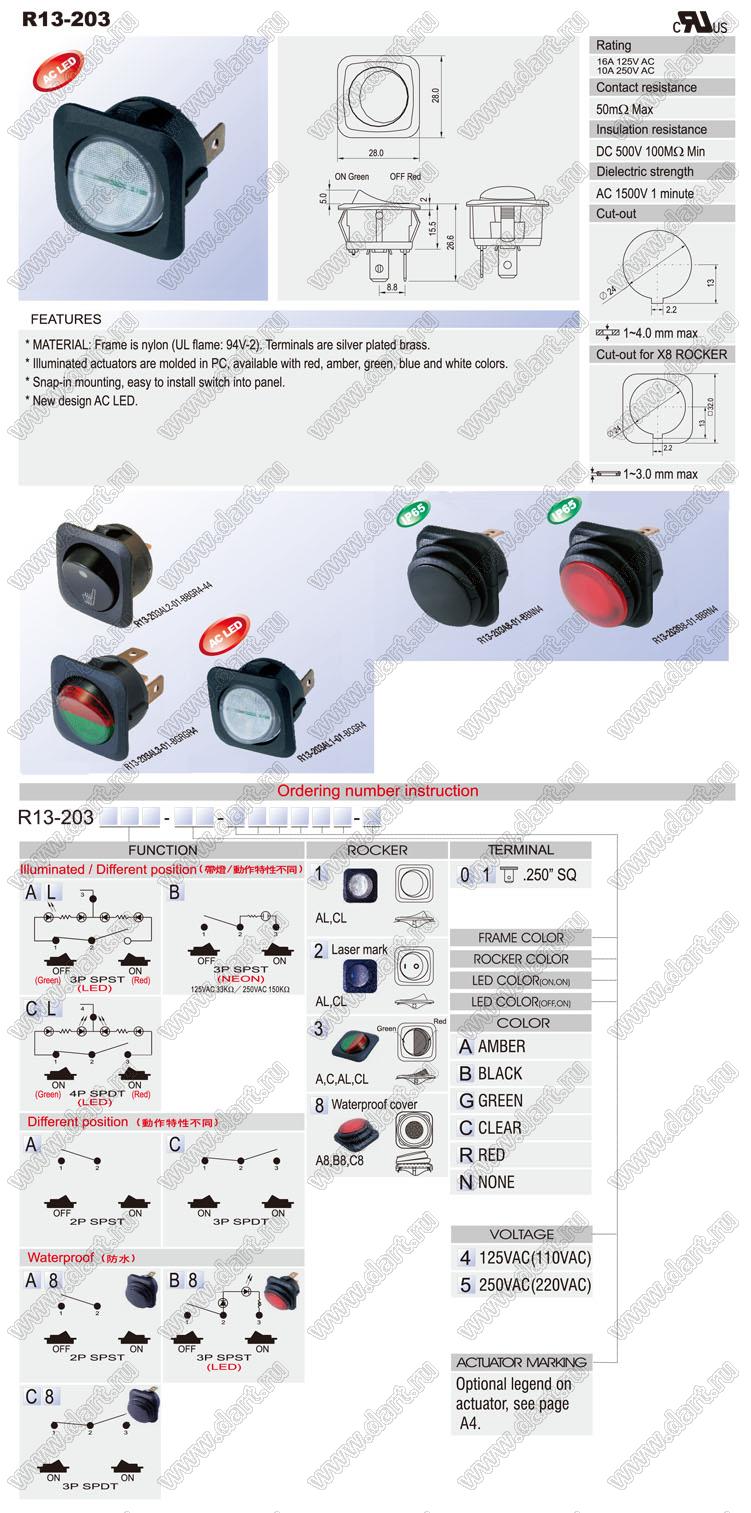 Каталог > Электронные компоненты, радиодетали > Переключатели, кнопки > Переключатели клавишные (ROCKER) > R13 серия > R13-203 серия > R13-203B8-01-BBRN5