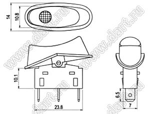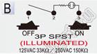 R13-239B-02 переключатель клавишный; 3P SPST (с подсветкой) off-on