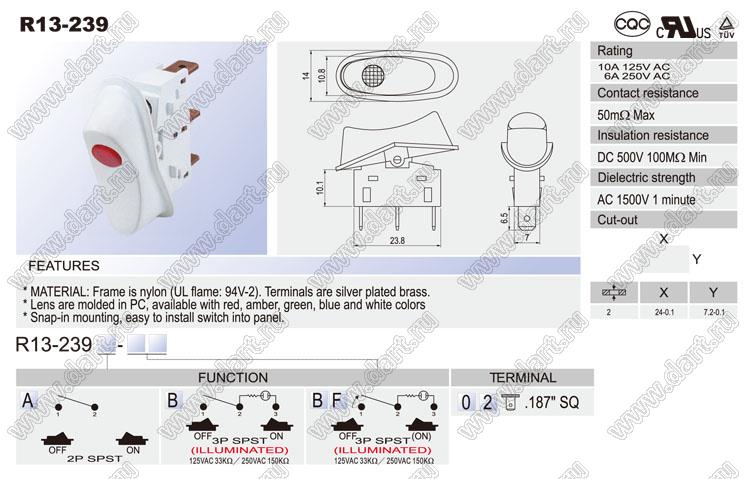 Каталог > Электронные компоненты, радиодетали > Переключатели, кнопки > Переключатели клавишные (ROCKER) > R13 серия > R13-239 серия > R13-239B-02