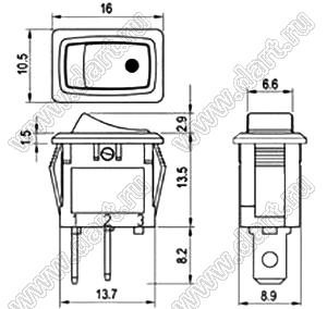 R13-284A-02 переключатель клавишный миниатюрный; 2P SPST off-on