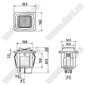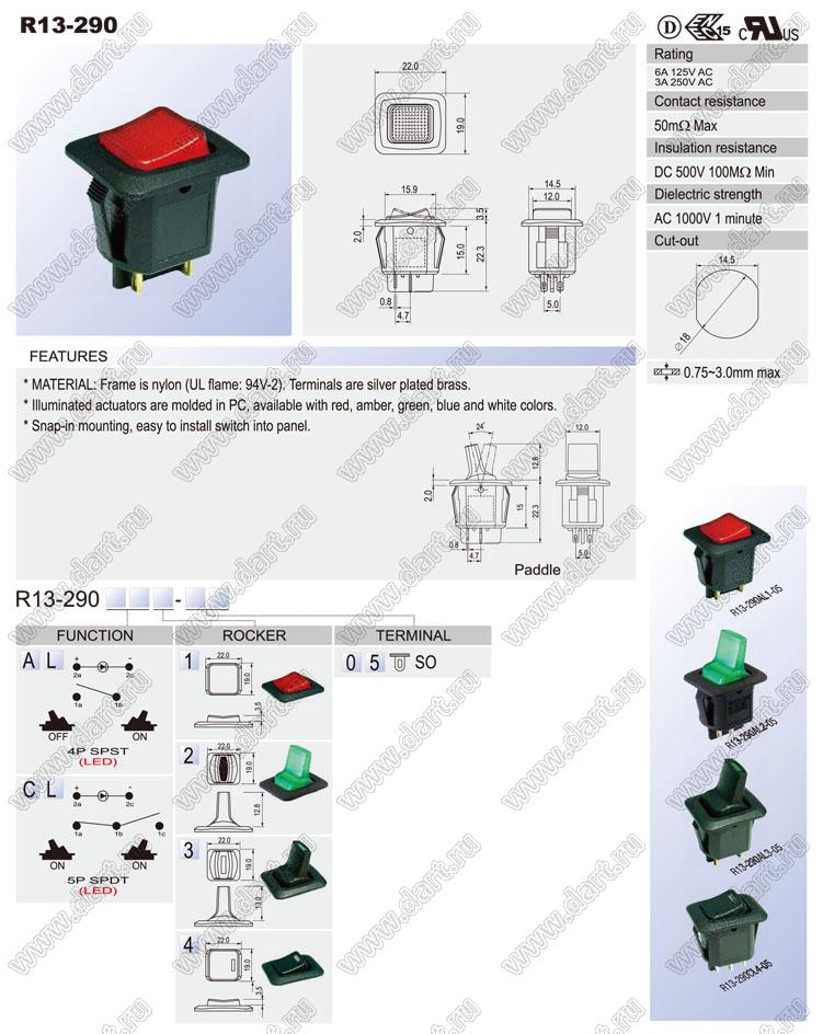 Каталог > Электронные компоненты, радиодетали > Переключатели, кнопки > Переключатели клавишные (ROCKER) > R13 серия > R13-290 серия > R13-290CL4-05-W