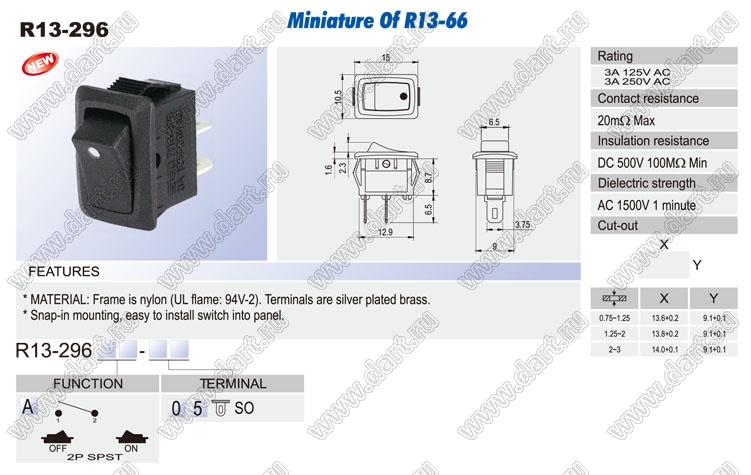 Каталог > Электронные компоненты, радиодетали > Переключатели, кнопки > Переключатели клавишные (ROCKER) > R13 серия > R13-296 серия > R13-296A-05