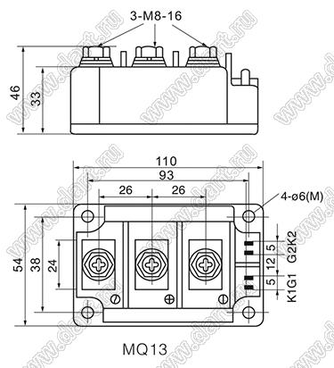 Каталог > Электронные компоненты, радиодетали > Модули силовые > Модули полупроводниковые силовые диодно-тиристорные > MF... серия > MFX200A1600V-DT