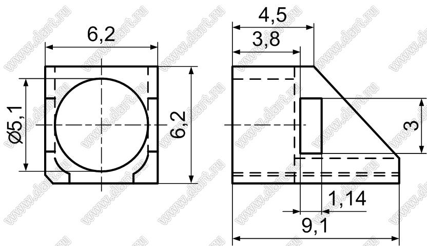 LED-505 держатель 5мм светодиода на плату угловой; C=5,1мм; PC (UL); прозрачный