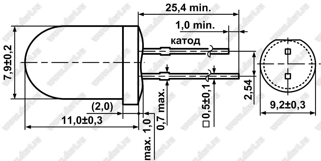 Каталог > Оптоэлектроника и индикация > Светодиоды и изделия на светодиодах > Светодиоды выводные > Светодиоды круглые 8x11 мм > DY-8B4SSC-C