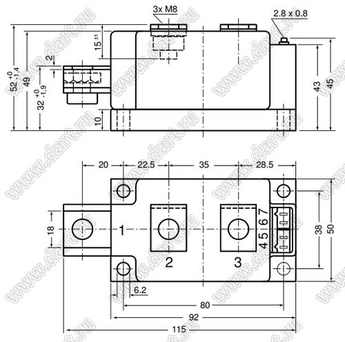 Каталог > Электронные компоненты, радиодетали > Модули силовые > Модули полупроводниковые силовые диодные > MD... серия > MDD312-20N1