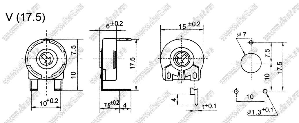 Каталог > Электронные компоненты, радиодетали > Резисторы > Резисторы подстроечные > Углеродные подстроечные потенциометры > PT15 серия > PT15-C-V17-203