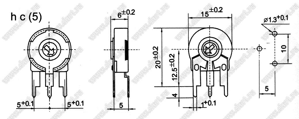 Каталог > Электронные компоненты, радиодетали > Резисторы > Резисторы подстроечные > Углеродные подстроечные потенциометры > PT15 серия > PT15-L-H25-103