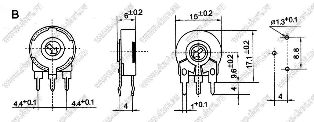 Каталог > Электронные компоненты, радиодетали > Резисторы > Резисторы подстроечные > Углеродные подстроечные потенциометры > PT15 серия > PT15-L-H06-501