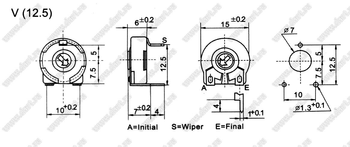 Каталог > Электронные компоненты, радиодетали > Резисторы > Резисторы подстроечные > Углеродные подстроечные потенциометры > PT15 серия > PT15-L-V02-502