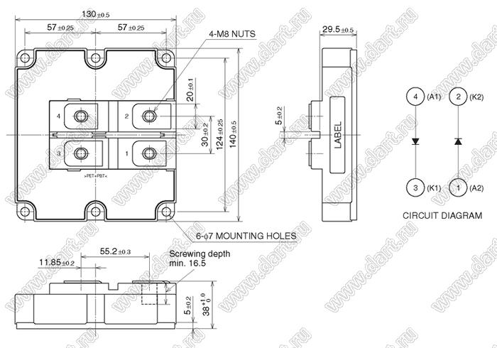 Каталог > Электронные компоненты, радиодетали > Модули силовые > Модули полупроводниковые силовые диодные > RM... серия > RM1200DB-34S