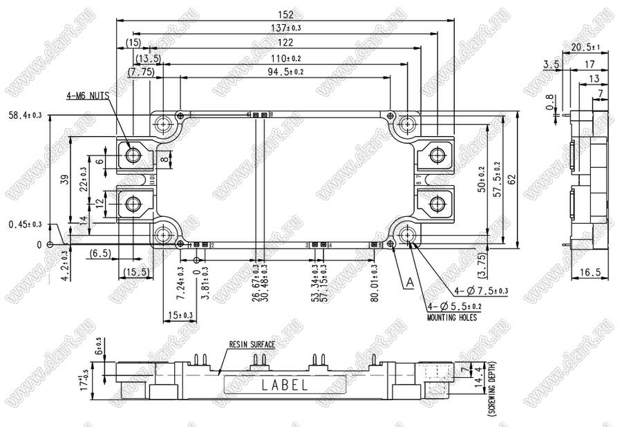 Модуль полупроводниковый силовой IGBT; VCE(sat)=1700В; Ic=600А