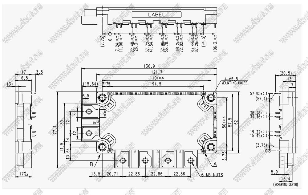 Модуль полупроводниковый силовой IGBT; VCE(sat)=1700В; Ic=75А