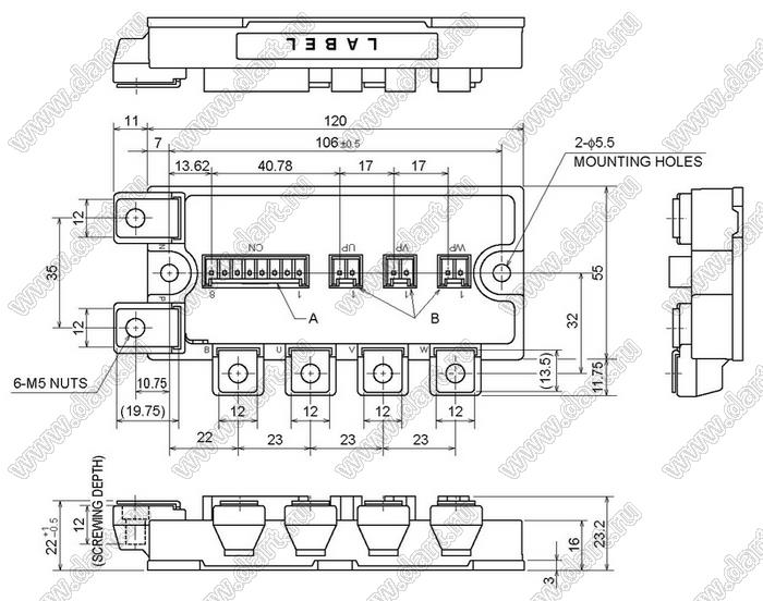 Модуль полупроводниковый силовой IGBT; VCE(sat)=1200В; Ic=50А