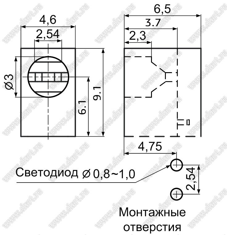 Каталог > Фурнитура для электронных устройств > Держатели и изоляторы компонентов > Держатели светодиодов > Держатели светодиодов угловые на плату > 1 x d=3,0мм > LED-1F