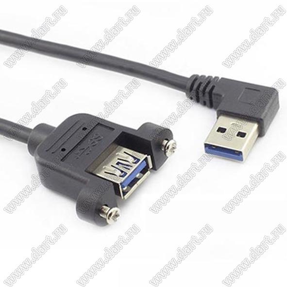 кабель с разъемами USB-A/M-правый угол-300 mm-USB-A/АF с креплением на панель