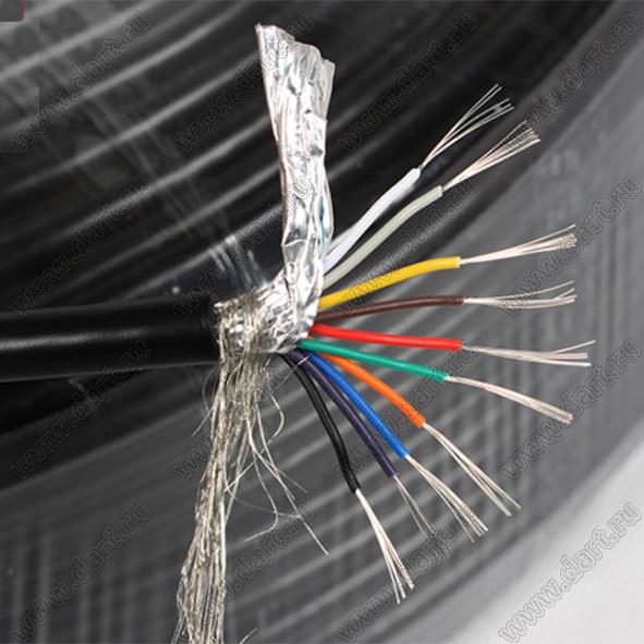 кабель медный экранированный; Tm=80°C; общая изоляция черная; цвета проводов: синий, коричневый, черный, белый, серый, оранжевый, красный, зеленый, фиолетовый, желто/зеленый