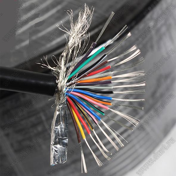 кабель медный экранированный; Tm=80°C; общая изоляция черная; цвета проводов: коричнево-черный, желтый, красный, желто-черный, розово-черный, сине-черный, зелено-черный, розовый, оранжево-черный, синий, черный, серо-черный, коричневый, оранжевый, серый, к